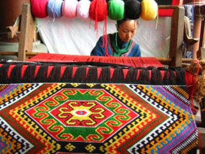 生存現(xiàn)狀 1957年土家族織花能手精心制作的“開發(fā)山區(qū)”圖案的“西蘭卡普”,融會了傳統(tǒng)技藝,傾注了對黨、對新生活的熱愛,被選人中國工藝美術品展銷會,到東歐各國展出,獲得各國人民和專家的贊賞。特別是十一屆三中全會以來,土家族青少年織花能手在繼承傳統(tǒng)的基礎上,新創(chuàng)了《韶山景》、《北京八景》、《擺手舞》、《熊貓》、《烏云花》、《蝴蝶菊花》、《獅子滾繡球》、《土王五顆印》、《張家界風光》、《七十二鉤》、《壽星花》等十多種作品,為民族藝術的繁榮增添了嶄新的內容。