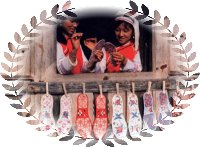 邊。男捆腰帶,女套繡花圍裙。頭上均包青布帕或絲帕,男帕左方垂一節(jié)過耳,婦女全包頭。未婚閨女留長發(fā)扎辮,用紅頭繩扎上下兩端,額前前留“劉海”。已婚婦女挽上發(fā)管,別簪,插銀首飾。褲子多為青、藍(lán)色、上結(jié)白布褲腰,褲腳短且大。青壯年男子打綁腿,女褲以對襯色布加邊,上綴三條均等的梅花條,腳上穿青布瓦鞋,包白色裹腳布。若遇喜慶節(jié)日或走親訪友,則另有一番梳妝打扮,如加佩牙簽、銀牌等。