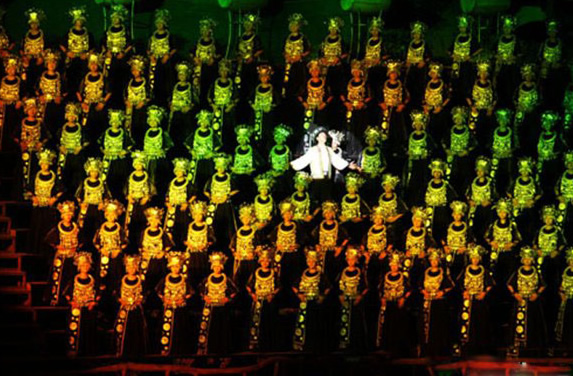 以此基礎(chǔ)進(jìn)行了藝術(shù)再創(chuàng)造,悲傷、歡樂、笑容、淚水交合成一個(gè)曲折動人的故事。整場演出體現(xiàn)人物細(xì)節(jié),以個(gè)性化的敘事結(jié)構(gòu)給人以親近感和頭尾呼應(yīng)的完整感。汲取世界豐富的音樂文化元素和表現(xiàn)形式,輔之以現(xiàn)代高科技的舞臺特效技術(shù),對世界音樂歌舞劇的一次成功的創(chuàng)新,成為中國山水實(shí)景演出的劃時(shí)代巨獻(xiàn)。