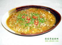 “張家界”的特色菜之一合渣,是土家人極喜歡的菜肴。以黃豆粉摻青菜溫火煮,味美易咽,營(yíng)養(yǎng)豐富。 |