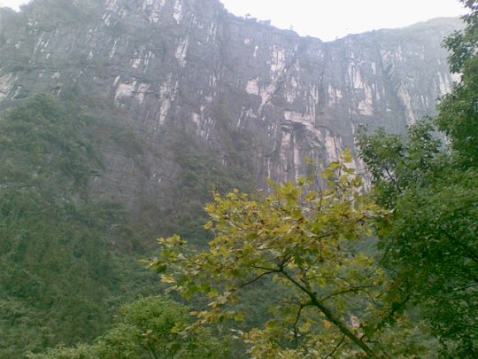 從玉鉆峰沿公路向北行2公里,但見溪谷兩岸石壁陡峭如削,高千仞,絕壁間石紋如畫,青白相間,加上有古木翠草點綴,如同畫屏。這就是“天門畫壁”。走過“天門畫壁”,便見三座石峰緊緊相連,這就是“相依巖”。高200余米,活象三個石人相依而立,靠前的一個是頭戴銀花首飾、身著百褶花羅裙的苗姑,緊靠后的一個是頭纏花帕、身穿對襟短衣的苗族男子,靠左的一個是頭纏絲帕、身著胸襟式土布衣的老媒人。