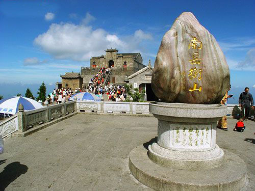 山巔祝融峰,海拔1290米,由于煙云的烘托和群峰的疊襯,構(gòu)成了"萬丈祝融拔地起,欲見不見輕煙里"的雄姿。登臨其上,可見北面洞庭湖煙波渺渺,若隱若現(xiàn),南面群峰羅列,如障如屏,水面湘江逶迤,宛如玉帶,西面雪峰山頂,銀濤翻騰,萬千景象,盡收眼底。