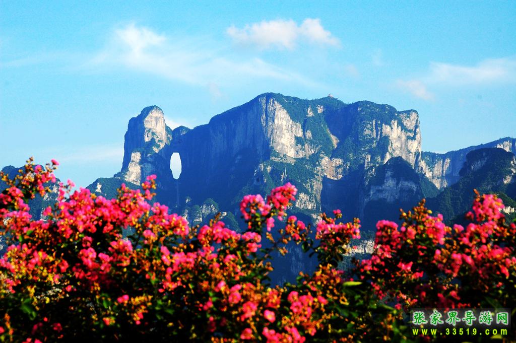 天門洞位于天門山山體的中上部,是世界上最高海拔的天然穿山溶洞,海拔1300米 ,其高131.5米,寬57米 ,深60米。它南北對(duì)開于千尋素壁之上,扶搖而通天,似明鏡似天門鑲嵌于蔚蔚天幕之上,終年吞云吐霧,蔚為壯觀中更加神秘莫測。“天門洞開云氣通,江東峨眉皆下風(fēng)”元朝的著名詩人張兌曾這樣贊嘆,磅礴的氣勢(shì)由此可見。1700多年來,這一道奇絕天下的勝景吸引著無數(shù)的探訪者趨之若騖。特別是在1999年,世界特技飛行大師架機(jī)穿越天門洞,在全球引發(fā)了轟動(dòng)效應(yīng),收看現(xiàn)場直播的觀眾達(dá)到8億之多。