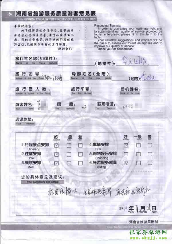 2010年7月26日上海夏小姐一行7位旅游質(zhì)量反饋