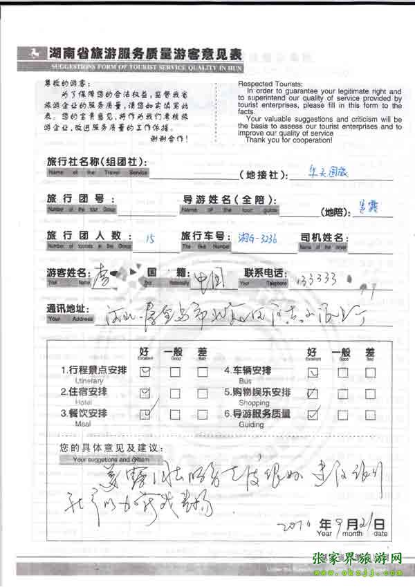 2010年9月21日河北李先生一行15位旅游質(zhì)量反饋:服務(wù)很好