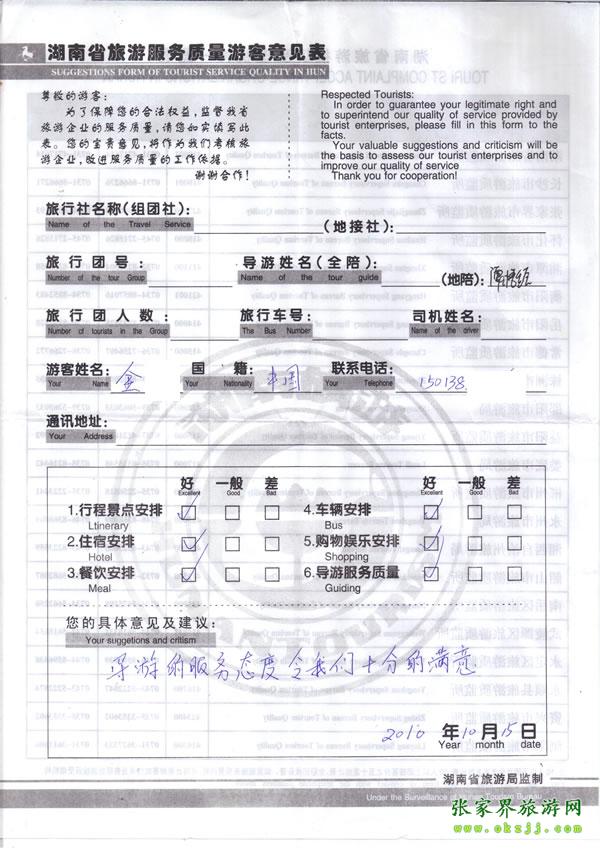 - 游客夏先生為表揚導(dǎo)游李姣姣寫來表揚信致我張家界... [14811]