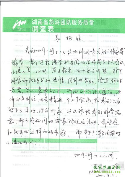 - 游客夏先生為表?yè)P(yáng)導(dǎo)游李姣姣寫(xiě)來(lái)表?yè)P(yáng)信致我張家界... [14811]