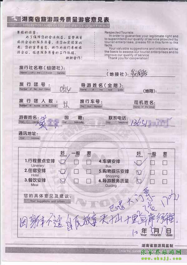- 游客夏先生為表?yè)P(yáng)導(dǎo)游李姣姣寫來表?yè)P(yáng)信致我張家界... [14811]