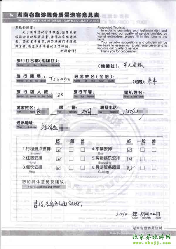 - 游客夏先生為表揚導(dǎo)游李姣姣寫來表揚信致我張家界... [14811]