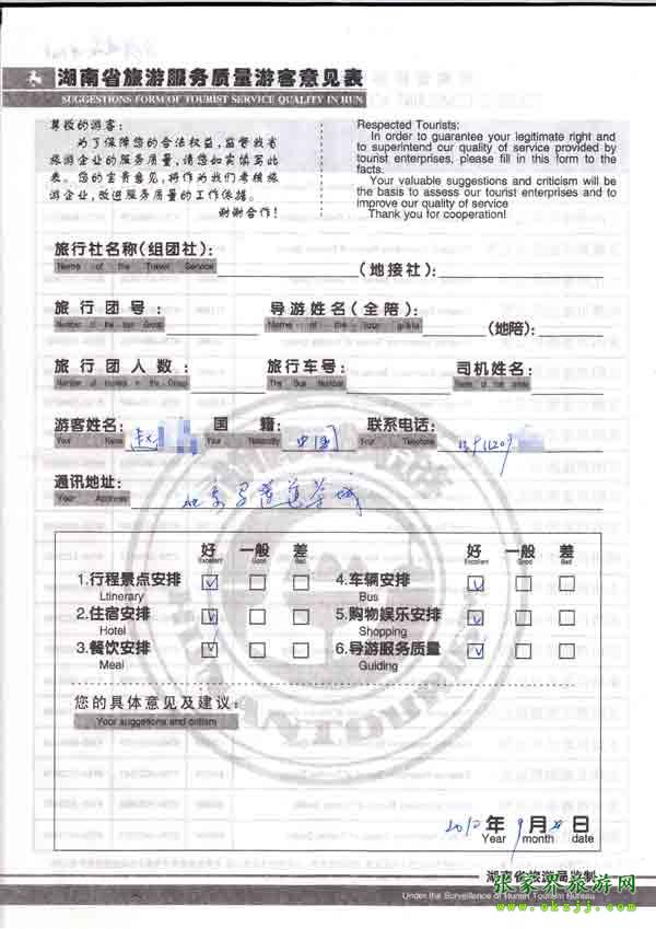 - 2011年10月26日張小姐一行18人旅游質(zhì)量反饋 [10482]
