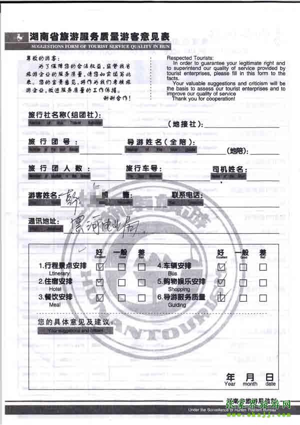 - 2011年10月26日張小姐一行18人旅游質(zhì)量反饋 [10482]