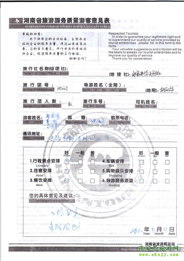 - 游客夏先生為表揚導游李姣姣寫來表揚信致我張家界... [14811]