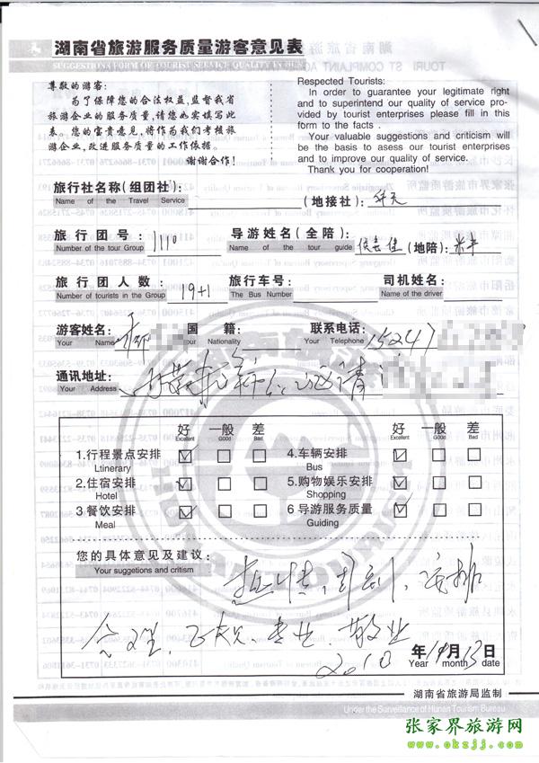 - 游客夏先生為表揚(yáng)導(dǎo)游李姣姣寫來表揚(yáng)信致我張家界... [14811]