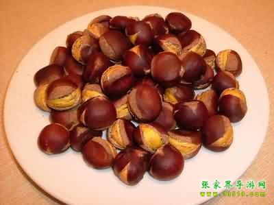 板栗與尖栗(俗名“漩栗”),山毛櫸科,是木本植物,主要含淀粉、糖等,在武陵源區(qū)各景區(qū)都有廣泛的分布。它們是多年生落葉喬木,一般樹(shù)高3至5米到10米左右。栗樹(shù)春末夏初開(kāi)花,夏天生長(zhǎng),秋天結(jié)實(shí)。果實(shí)成球形,外殼帶刺,里面栗子光滑成紫色,所以農(nóng)家有“娘被千針衫,兒穿紫龍袍”的謎語(yǔ)。板栗成熟以后,外殼便自然張開(kāi),栗子隨風(fēng)脫落。如在板栗林里撿栗子,倒是一大樂(lè)趣。“白露”過(guò)后,板栗大量成熟,滿樹(shù)的栗球都張開(kāi)了笑口,一遇到颯颯吹來(lái),栗子便唏唏唰唰唰隨風(fēng)脫落,滾進(jìn)山溝里或低洼處,如果運(yùn)氣好,可以撿到一窩一窩的板栗,有時(shí)可以撿幾十斤。