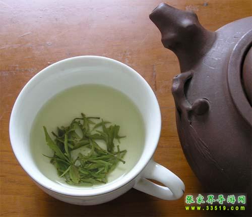 武陵源風(fēng)景區(qū)盛產(chǎn)香茶,著名的有“青巖茗翠”、“龍蝦花茶”、“黃石寨云霧茶”、“天崇毛尖”與“索溪毛尖”等。通過1982年評比,“青巖茗翠”獲部級金杯獎,同年又獲全國首屆食品博覽會銀獎。“龍蝦花茶”也已列入全國名茶。人們經(jīng)過品嘗、評比,并經(jīng)茶葉專家鑒定,一致認(rèn)為“青巖茗翠”、“龍蝦花茶”等具有外形美觀,內(nèi)質(zhì)優(yōu)良等特點。這種茶葉,從外形來看,條索緊結(jié),圓渾彎曲,苗鋒顯露,銀毫滿披,色澤翠綠,從內(nèi)質(zhì)來看,清香馥郁,味醇回甘,湯色綠明,葉底均勻,飲后爽神,具有熟板栗蘭花之奇香,飲后回味無窮。據(jù)考證,“青巖茗翠”屬高山云霧茶一類。自古道:“高山出好水,云霧育佳茶”。黃石寨枇杷界海拔1000多米,氣候溫和,云霧繚繞,溫度適宜,因而,茶葉嫩度高,品質(zhì)好。這種獨特的環(huán)境為茶葉中的氨基酸,咖啡堿等有效成分的形成和增長,提供了優(yōu)越的生長條件,而對質(zhì)地粗老的纖維素的形成,則又起到了抑制作用。還有,這些山峰上日照短,直射光少,漫射光多,晝夜溫差大,土質(zhì)的有機質(zhì)豐富,因而結(jié)構(gòu)疏松,排水又好。一切這些因素,都為茶葉的平穩(wěn)生長創(chuàng)造了良好的條件。所以“青巖茗翠”茶,就博得了各地名家的一致好評。湖南省茶葉學(xué)會秘書長、湖南農(nóng)學(xué)院副教授朱先明品了這種茶以后,賦詩贊美: