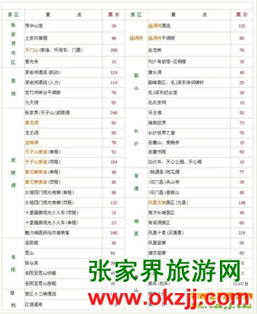張家界各旅游景點(diǎn)門票明細(xì)